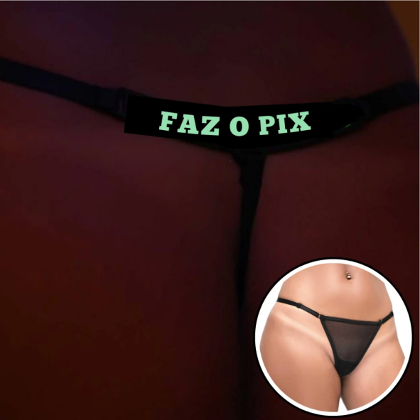 Seja único e original com a Calcinha Y5078! Seu detalhe especial que brilha no escuro e a provocativa mensagem FAZ O PIX vai te destacar e adicionar um toque de diversão às suas noites.
